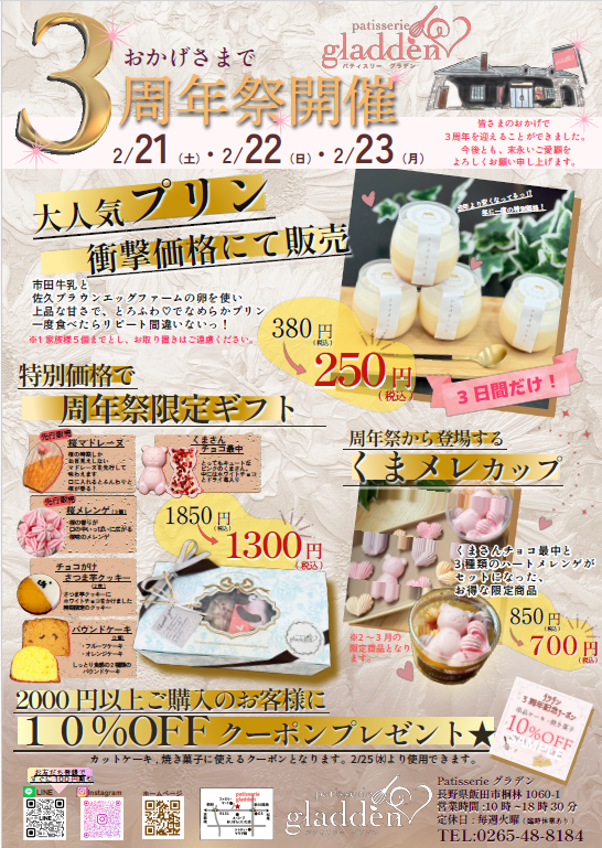 この3日間しか安くならないプリン!!そして特別ギフトなどなど、お得がいっぱい!